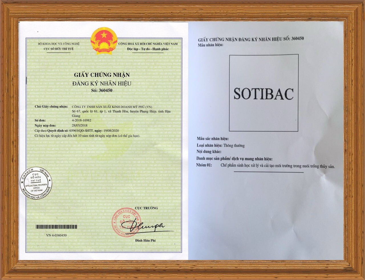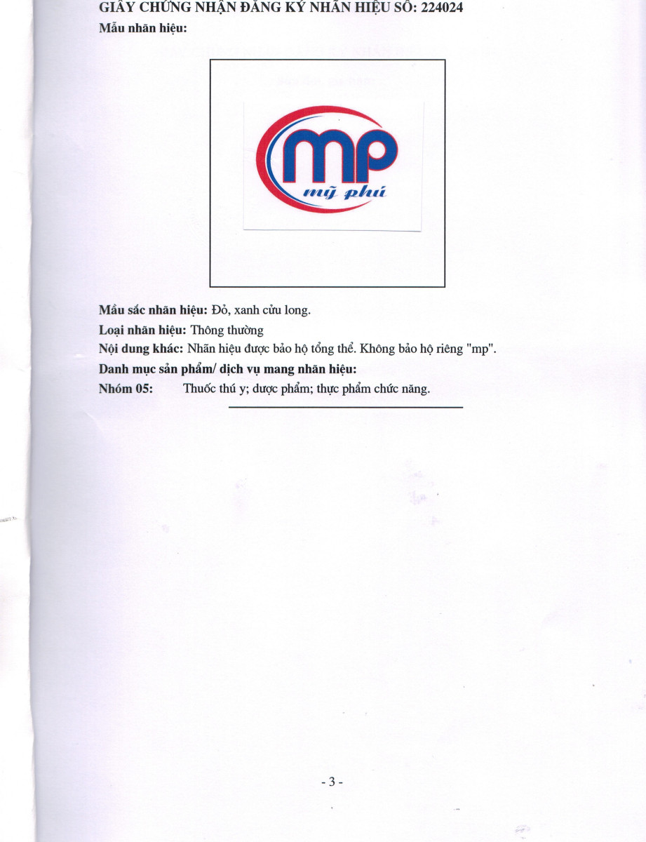Căn cứ theo quyết định số 25741/QĐ-SHTT ngày 8/5/2014 của Cục Sở hữu trí tuệ, Bộ Khoa học và công nghệ Việt Nam; công ty TNHH SXKD Mỹ Phú được cấp chứng nhận bảo hộ độc quyền logo Mỹ Phú. Sản phẩm được mang logo Mỹ Phú đã được bảo hộ, mọi hình thức làm hàng giả, hàng nhái sản phẩm của Công ty Mỹ Phú sẽ bị xử lý theo các quy định của Pháp luật Nước Cộng Hòa Xã Hội Chủ Nghĩa Việt Nam.